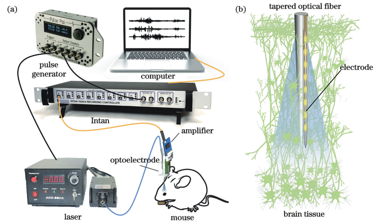 在神经科学研究中,光遗传学技术通过将携带光敏蛋白的病毒注入目标脑区,然后利用特定波长的激光激发或抑制神经元活动,能够实现高精度的神经调控。然而,如果要同步观察这些神经元在受到光刺激时的电生理信号,就需要将激光与电极“打包”到同一套装置中。...