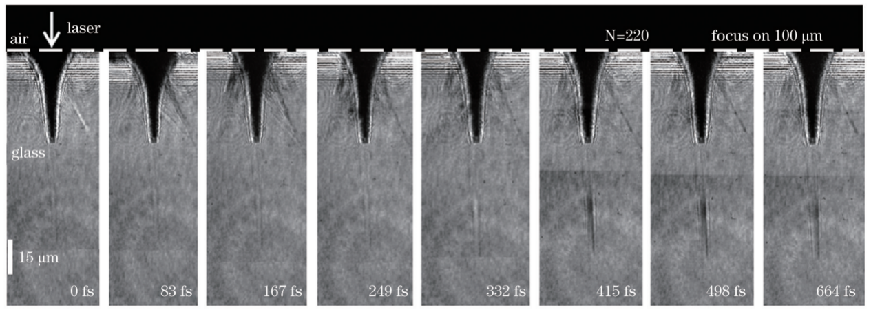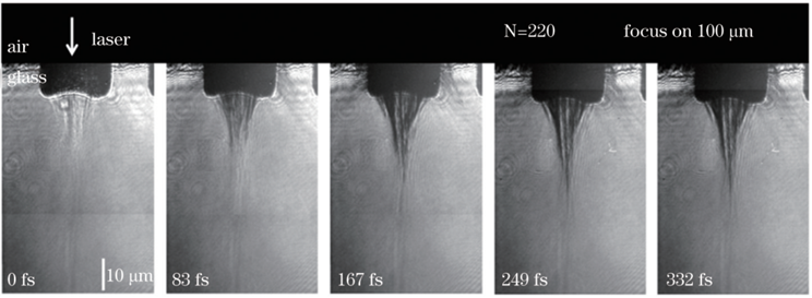 图2 40×聚焦且焦点在石英内部100 μm处时,第220个脉冲传播过程的阴影图