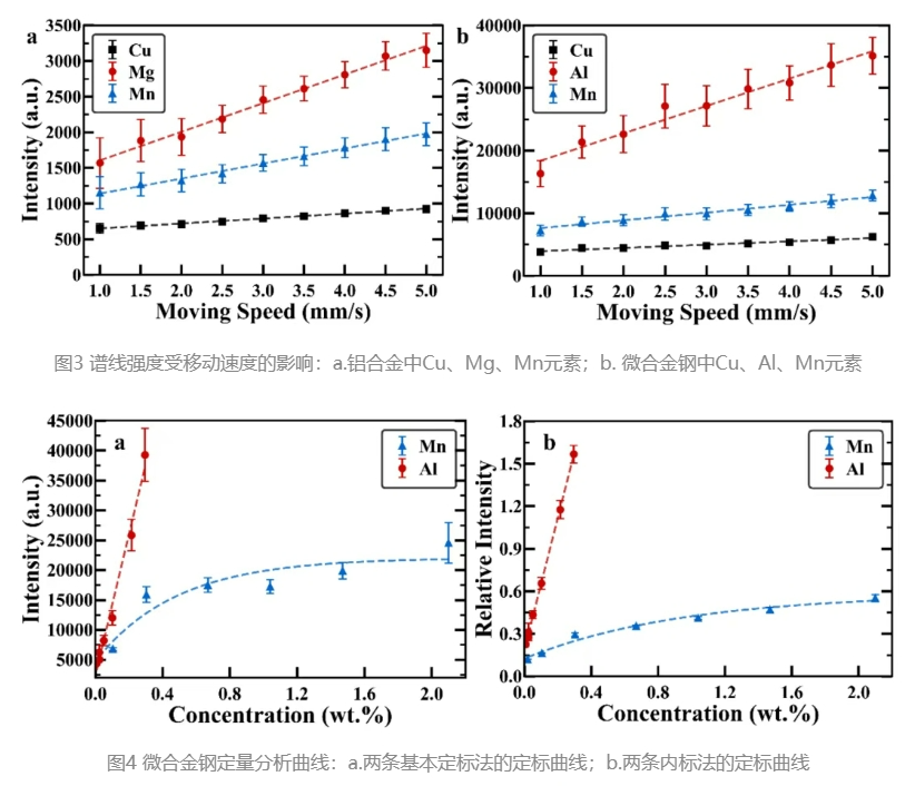 在优化参数条件下,FL-LIBS系统用于两类典型工业合金的快速定量分析——6061系列铝合金和微合金钢标准样品。