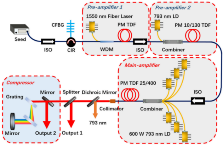 图1 平均功率千瓦量级的掺铥光纤CPA系统
