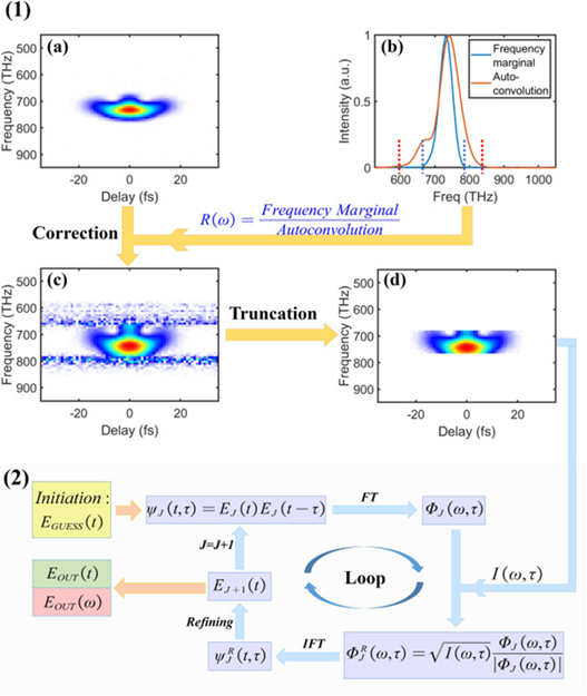 宽带超短激光脉冲是光学相干层析成像、强场物理、阿秒科学等前沿领域的核心工具,其时域波形的精准完整表征是其应用的关键前提。高功率激光物理联合实验室朱健强团队提出Spectral Correction and Trace Truncation(SCTT)方法—结合光谱滤波函数对测量迹线的校正效果,与多网格并行叠层成像算法对不完整迹线的脉冲重建能力,通过“光谱校正-裁剪重建”两步操作,实现了对超宽带脉冲的精准反演,为超宽带激光脉冲的精准表征提供了全新路径。相关成果发表于Optics and Lasers in Engineering 。