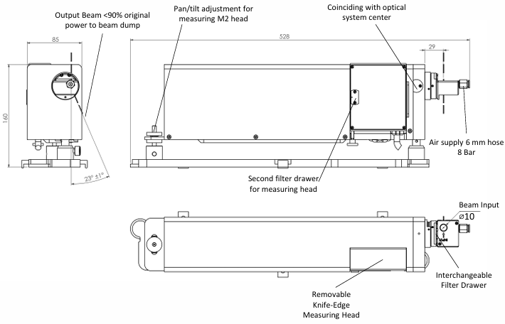 测量方法 | 主光束经采样后导入刀口式测量头 |