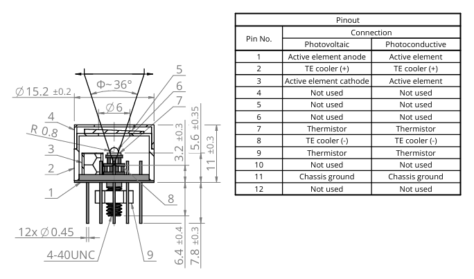 5 | Active element | HgCdTe/InAs/InAsSb/GaAs |