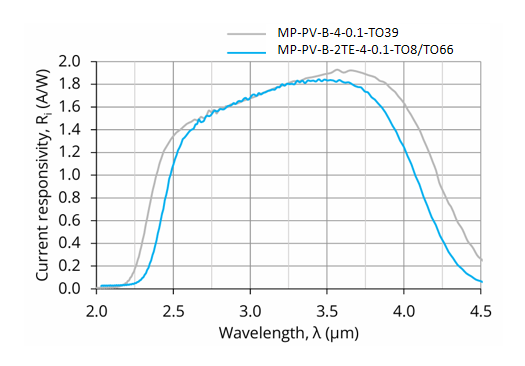 产品特点光谱范围: 2.3 to 4.4 µm;背照式;双级热电冷却;无需偏置;无1/f噪声