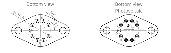 MP-PV-B-2TE-4-0.1-TO8 与 MP-PV-B-2TE-4-0.1-TO66 是基于碲镉汞异质结的两级热电制冷(2TE)红外光伏探测器,具有最优性能与稳定性。其特定工作波长为4.0um,有效感光面积为0.1mm×0.1mm。可根据需求优化起始波长。施加反向偏压可显著提升响应速度与动态范围,但需注意:虽然此举能增强高频性能,偏压探测器产生的1/f噪声可能导致低频性能下降。该探测器提供TO8与TO66两种封装规格,配备3度楔形蓝宝石窗口(wAl2O3)以消除干扰效应。