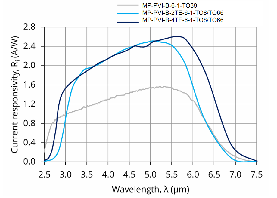 产品特点光谱范围: 2.6 to 7.0 µm;背照式;双级热电冷却;浸入式透镜技术应用;无需偏置;无1/f噪声