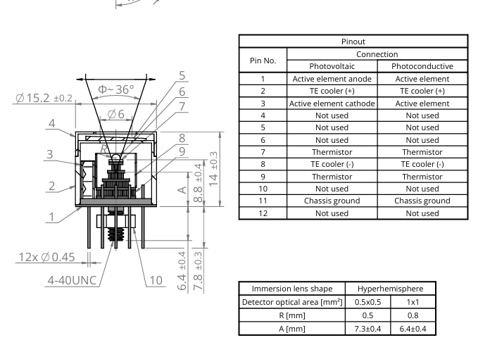 6 | Active element | HgCdTe/InAs/InAsSb/GaAs |