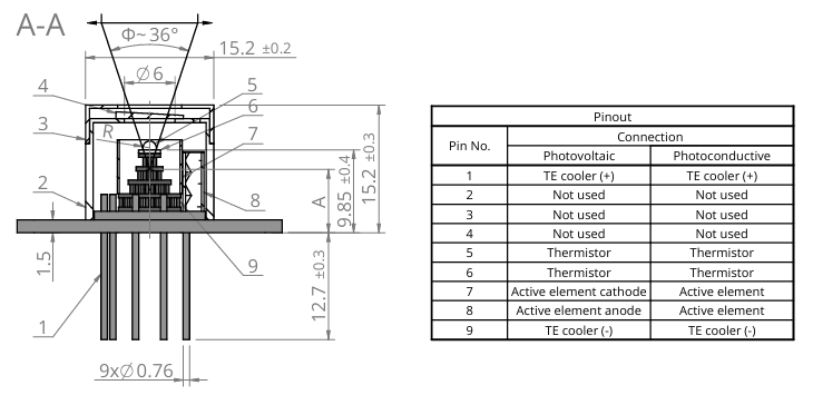 5 | Active element | HgCdTe/InAs/InAsSb/GaAs |