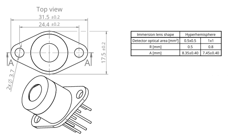 产品特点光谱范围: 3.0to 10.0 µm;背照式;四级热电冷却;独特的浸没透镜技术;无需偏置;无1/f噪声