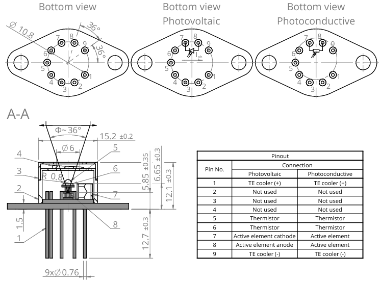 5 | Active element | HgCdTe/InAs/InAsSb/GaAs |