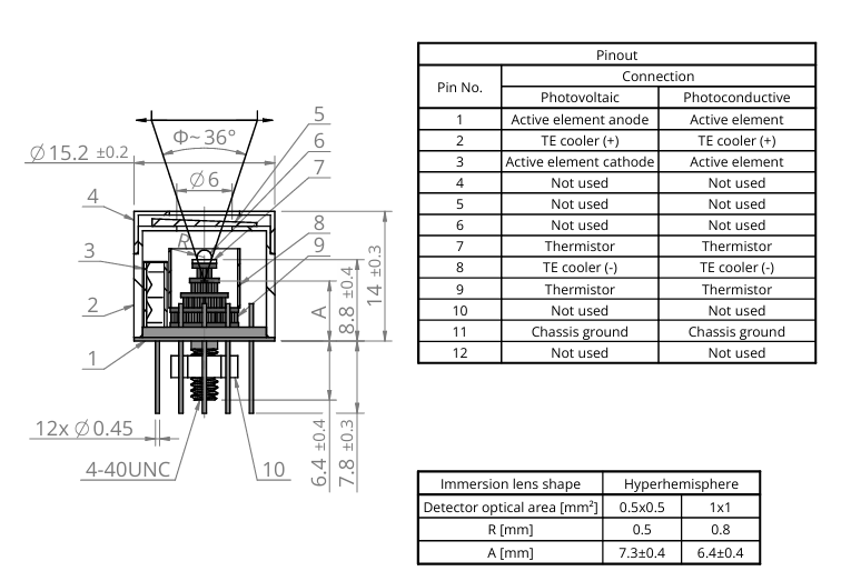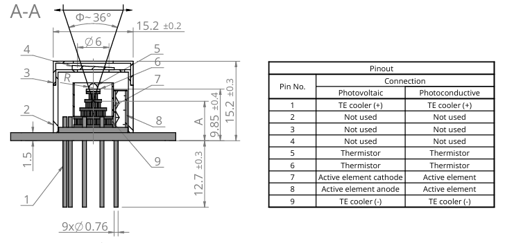 5 | Active element | HgCdTe/InAs/InAsSb/GaAs |