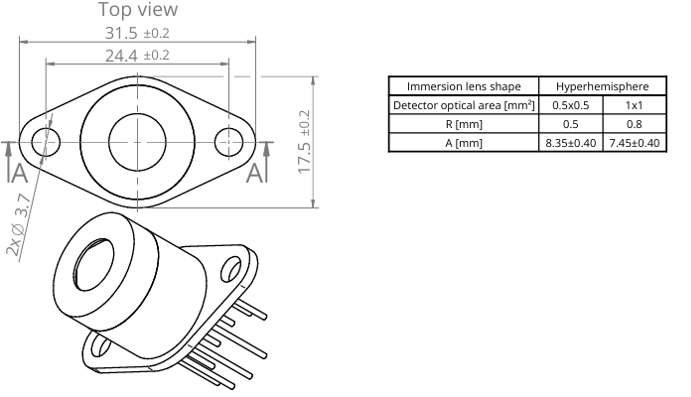 产品特点光谱范围: 2.0 to 12.0 µm;响应快速;背照式;四级热电制冷;应用独特的浸入式透镜技术