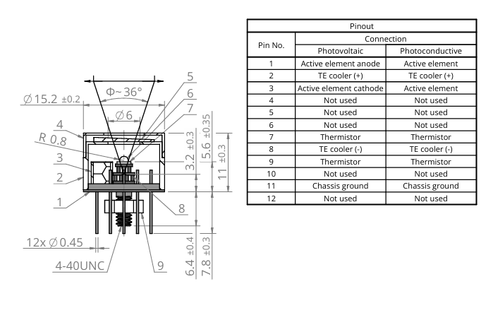 5 | Active element | HgCdTe/InAs/InAsSb/GaAs |