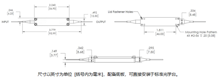 尺寸(不含光纤) | 57 × 13 × 9 mm | 可定制 |