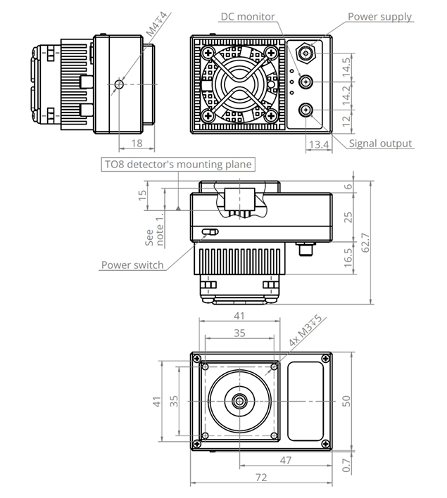 产品特点兼容TO8封装的热电制冷红外探测器;集成TEC控制器与风扇;配备M4安装孔 频率带宽:高达250 MHz;单电源供电;具备直流监测功能;专为高效散热而设计;兼容各类光学配件;提供高性价比的OEM版本