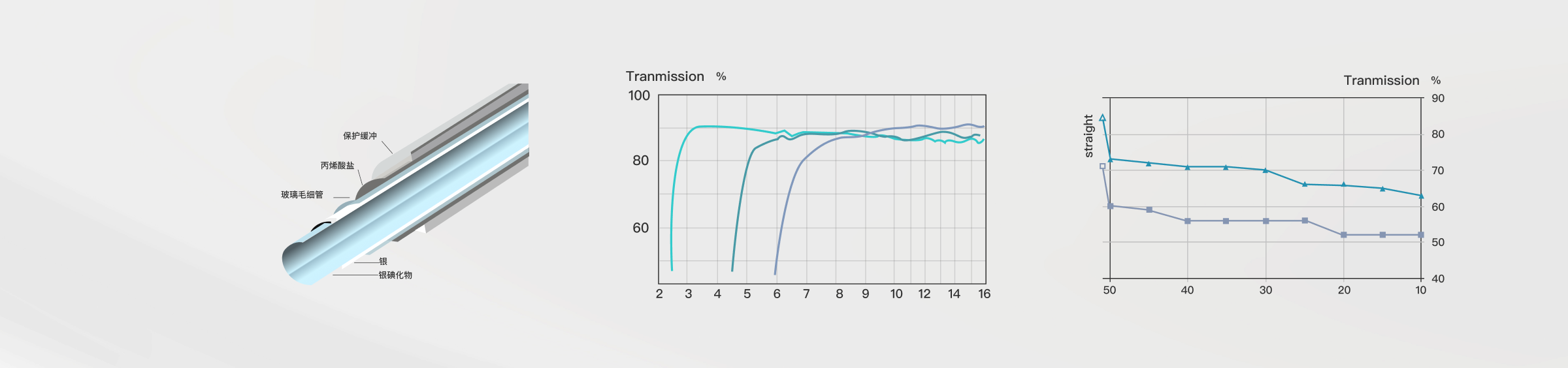 空芯石英玻璃波导(HWG)可灵活传输中红外波段(2-18μm)的低发散红外光束。与任何实芯红外光纤不同,HWG线缆因空芯结构消除了端面菲涅尔反射损耗。这一优势及相比多模红外光纤更小的出射光束发散角,使其成为激光功率传输的优选方案。标准HWG线缆芯径范围为500-1000μm,外层包覆双层聚合物护套,具备广泛应用所需的高柔韧性。