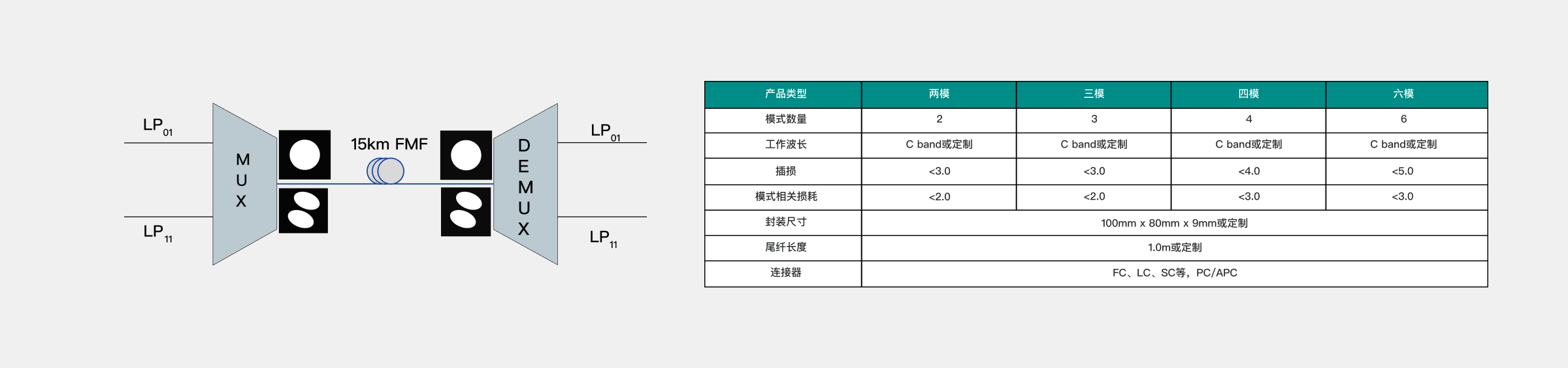 我们的模式复用解复用器、模式转换器系列产品采用独特工艺设计制备,具有低损耗、低串扰、工作波长范围大等优点,与本公司研制的少模光纤完美匹配,是实现模式复用及解复用的关键器件,适用于光传输、光传感、科学研究等领域。可提供面向少模光纤以及多芯少模光纤的模式耦合器完整解决方案及订制化服务。